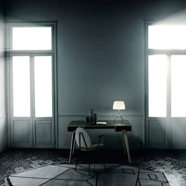 Lumiere table lamp by Rodolfo Dordoni , has become an icon of design, and it is distinguished by the blown glass diffuser combined with an unmistakable aluminium tripod. Available in dark red color.
