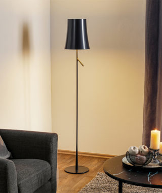 Multifarious and friendly, the Birdie floor lamp is a reinterpretation of the classic lampshade-lamp with a contemporary twist. Available in graphite grey color.