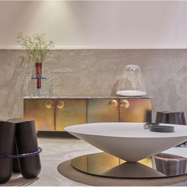 Salute is a family of tables mixing marble and metal for a high visual impact.