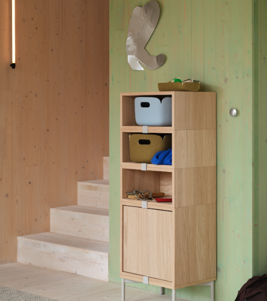 Injected flame-retardant foam over internal steel frame. Base in steel varnished. Feet in painted beech. Belt in dark brown leather.