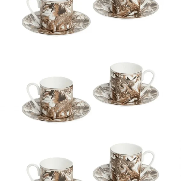 TROPICAL JUNGLE WHITE – COFFEE CUP AND SAUCER – SET OF 6