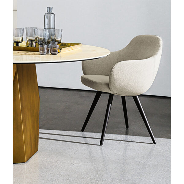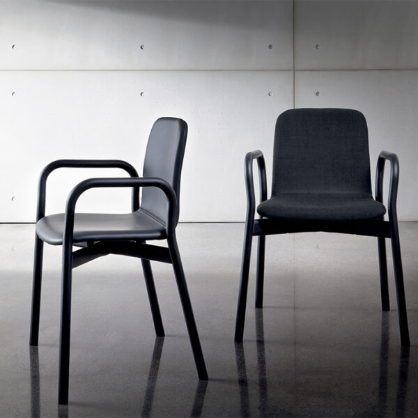 A comfortable and enveloping seat that matches the tables of Sovet’s collection with refined simplicity.