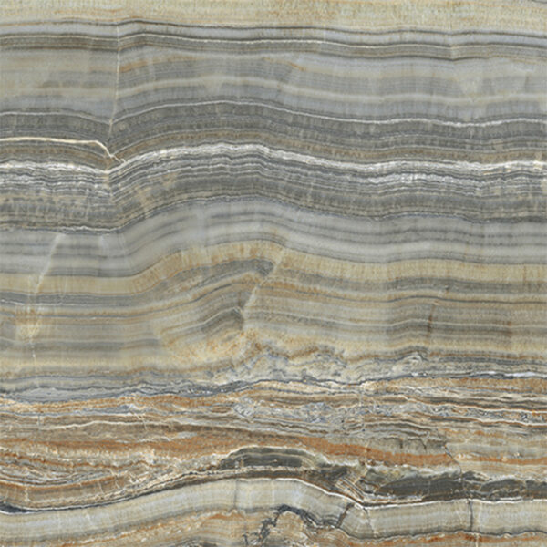 Coffee table with embossed mocha legs and structure, top in gold onyx ceramic.