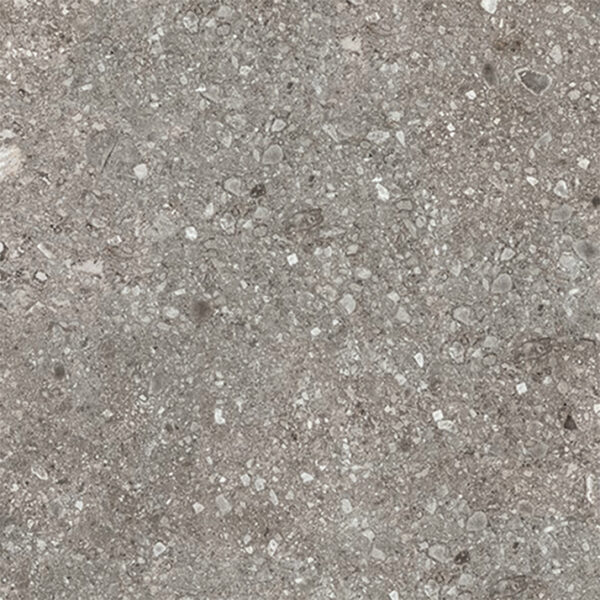 Extensible dining table with embossed white legs and Ceppo di Gré ceramic top.