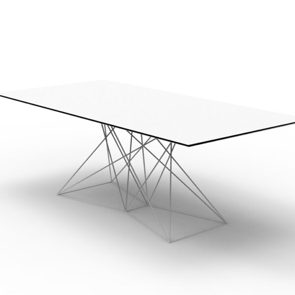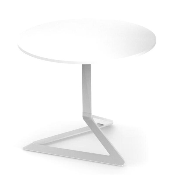 Delta table by Jorge Pensi made of extruded aluminum tube with cast aluminum base coated with epoxy baked painting. Item suitable for indoor and outdoor use. Available in white.
