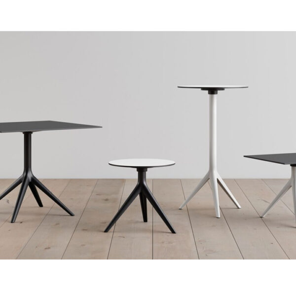Mari-sol tables available in black and white color. Extruded aluminum tube with cast aluminum base coated with epoxy baked painting. Item suitable for indoor and outdoor use.