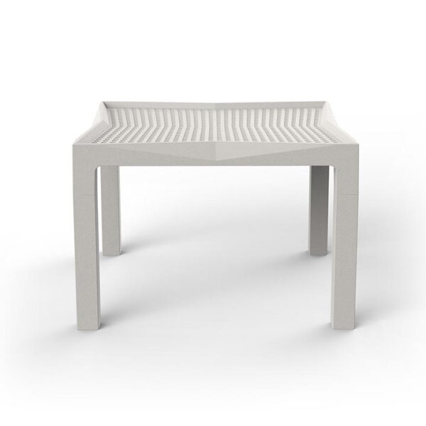 Voxel side table by Karim Rashid made from polypropylene and reinforced with fiberglass manufactured by gas injection. Stackable . Available in white and ecru colors. Suitable for indoor and outdoor use. 100% Recyclable.