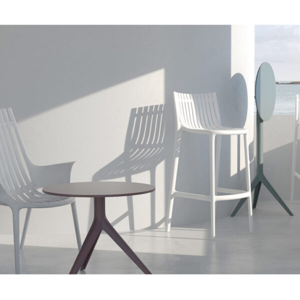 Ibiza bar stool by Eugeni Quitllet, made of injected polypropylene with fiber glass. Stackable. Available in white color. Item suitable for indoor and outdoor use.