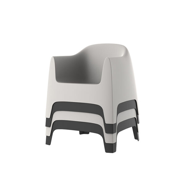 Solid lounge chair, made of injected polypropylene with mineral additives. Stackable. Available in white. Item suitable for indoor and outdoor use.