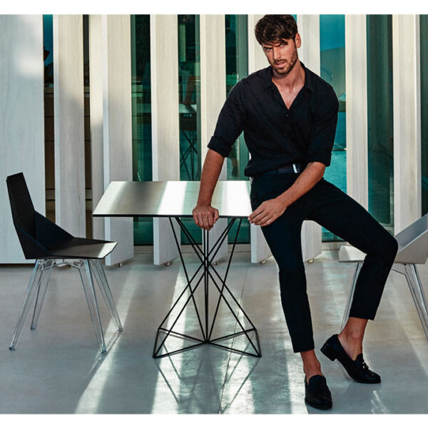 Quartz dining table, made of gas air molding injected polyamide with fiber glass for legs and HPL table tops. Stackable. Available in white. Item suitable for indoor and outdoor use.