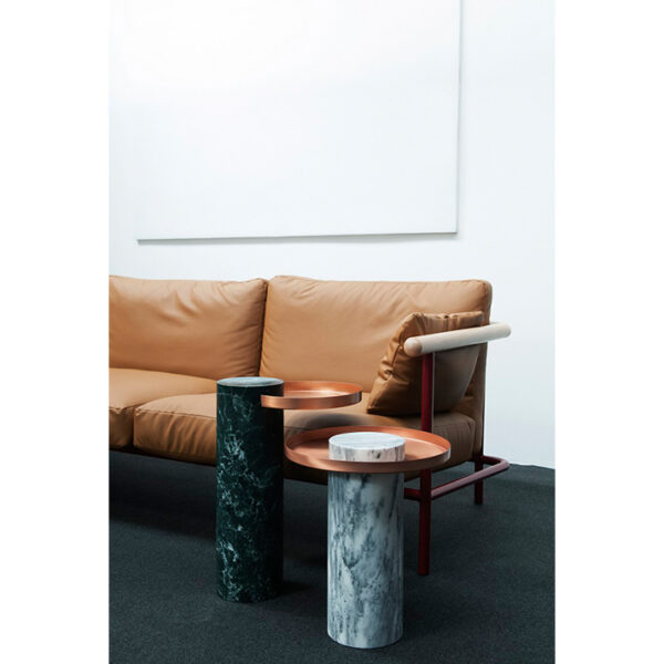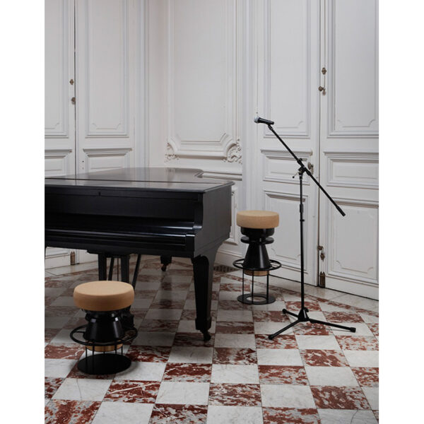 Bolt is maybe the most iconic stool of the collection. Its unique silhouette is highly recognizable with its four maple legs elegantly held by a contrasting bronze ring.