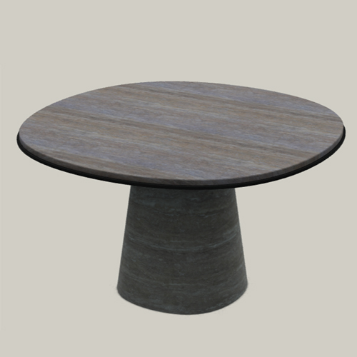 OWEN DINING TABLE TOP 140 – MARBLE M2 TOP + BASE: TRAVERTINO TITANIUM LIGHTMATTE WITH