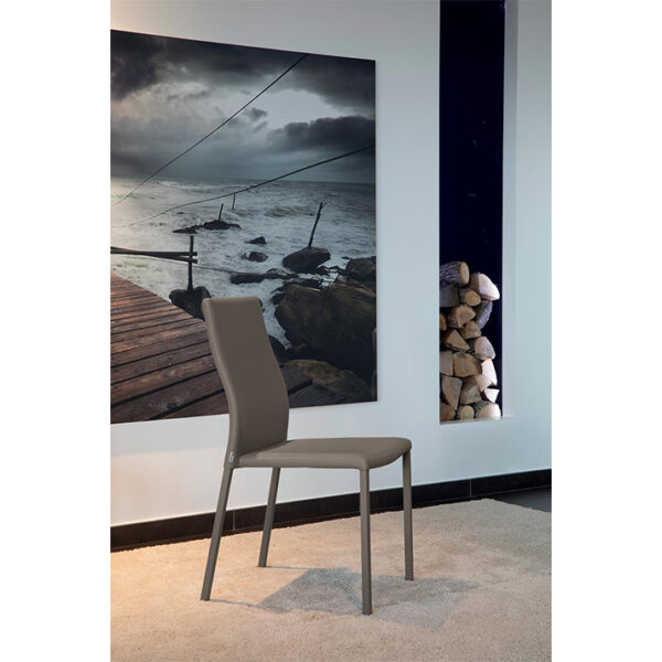 Samir stool, available in fango ecopelle color and anthracite legs.