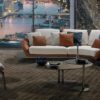 Sofa with wooden structure and polyurethane foam padding. Seat cushions in crushproof polyurethane. Patented back cushions in goose feather and polyurethane insert.