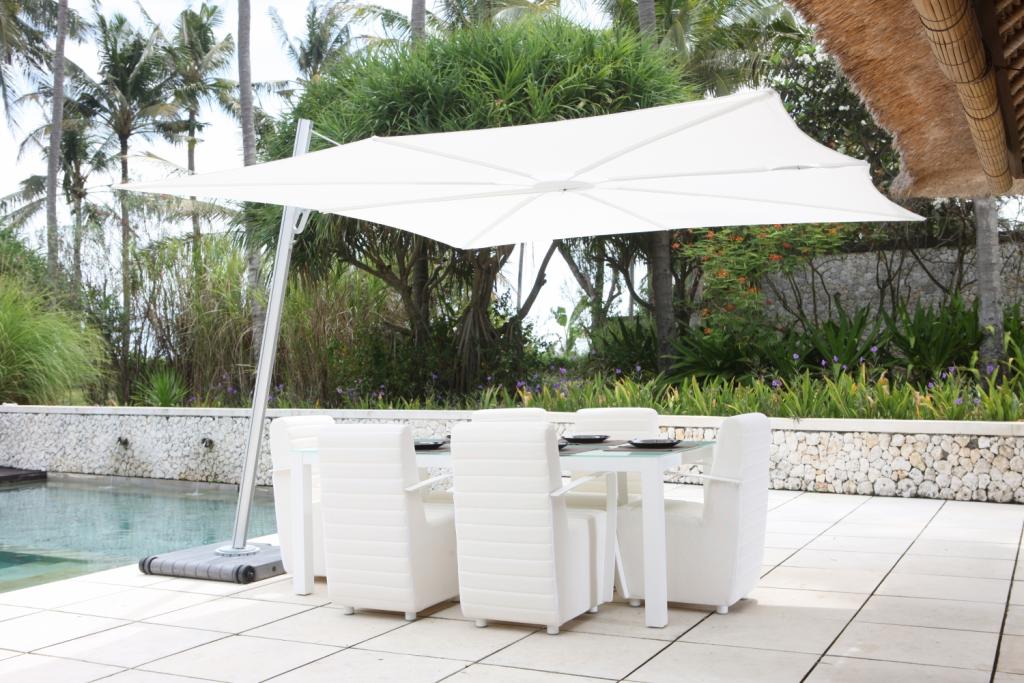 Spectra cantilever umbrella 2,5 x 2,5 m square, straight 90°, frame in Aluminum. Round rotation support is included.