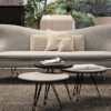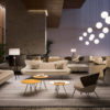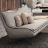 The sinuous lines of the backrest describe a wave that runs through the whole profile until you get to draw the armrest . A delicate shape, highlighted by a contrasting profile that outlines the seat seamlessly. Available in two colors.