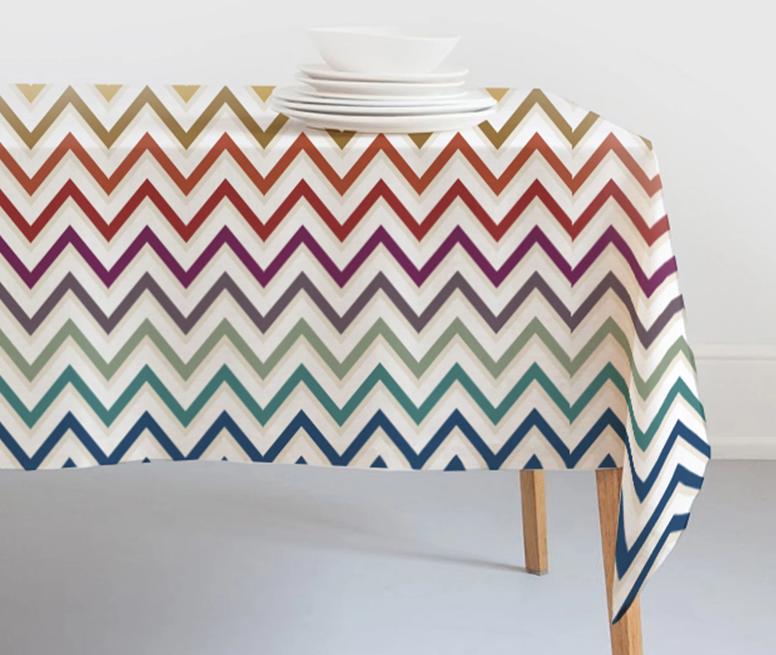 Unmistakably Missoni, this full-effect tablecloth is a hypnotic explosion of color that captures the spirit and heritage of the Italian brand. The small, rectangular ‘Watamu’ tablecloth is designed to dress tables that seat twelve. The iconic zigzag is finely represented on cotton in sumptuous multicolor shades creating a dynamic, mesmerizing effect. Tables are transformed into design experiences in an instant. Dress with plain tableware, or with patterned Missoni pieces for a full, iconic look.